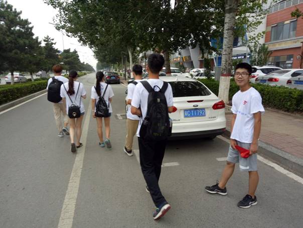 第二天,异乡人带着调查的目标准时集合在大东门,前往乐购周围一带实地考察,我们穿梭在街头,寻找共享单车聚集地,寻找惨遭损坏的共享单车,暗中记录市民的使用情况,并街头采访路人对于共享单车的意见。又一天下来,异乡人团队初步掌握了秦皇岛市共享单车的分布情况和使用情况,收集到初步的资料。