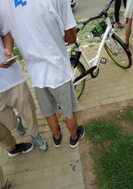 吃完午饭,团队再次集合,一路乘着公交车来到北戴河风景区,在这里,我们见到了不同品牌的共享“小绿车”。我们一边调研共享单车分布情况,一边记录一边采访路人关于共享单车的看法和意见,一路走来,我们克服了路途遥远,打车困难等难题,收获到丰富硕果。当然,调查完高校和部分风景区,当然不能忽略相对发达的市中心了,市中心相比于郊区来说,人流量更大, 我们决定前往一探究竟。