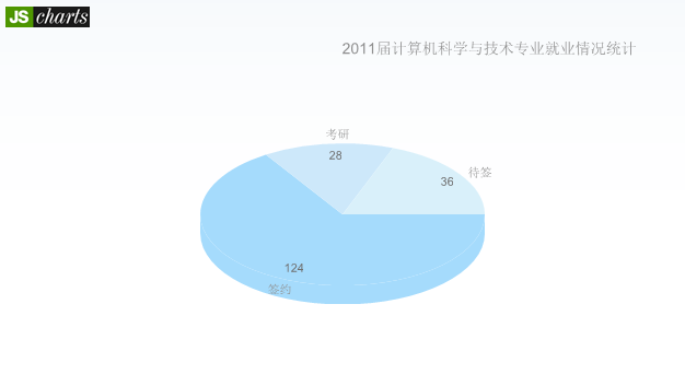2011年,计算机科学与技术专业毕业生总人数188人。其中考研28人,考研占总人数14.86%;签约124人,签约占总人数65.96%;待签36人。合计就业人数152人,就业率80.85%。