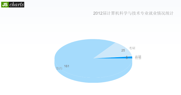 2012年,计算机科学与技术专业毕业生总人数190人。其中考研25人,考研占总人数13.16%;签约161人,签约占总人数84.74%;出国1人,出国占总人数0.53%;待签3人。合计就业人数187人,就业率98.42%。
